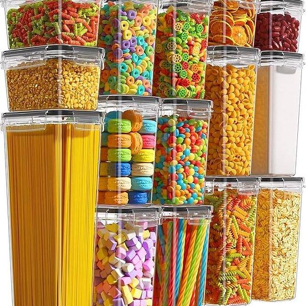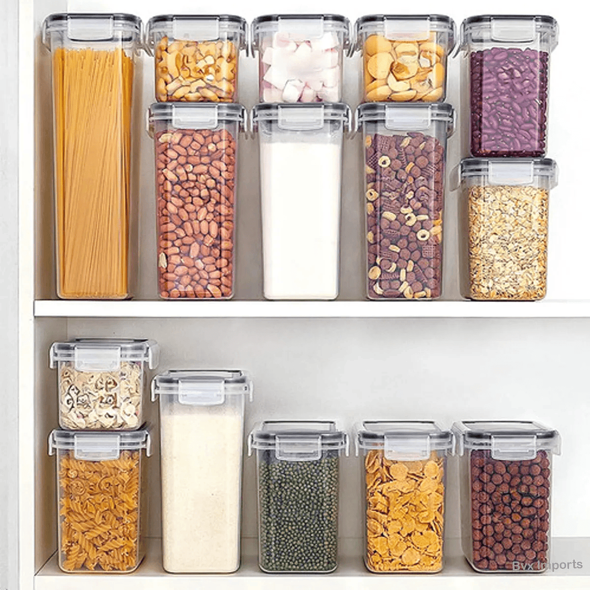 Cadencia Kit 15 Potes Herméticos Mantimentos Quadrado Cozinha Tampa Trava Branco