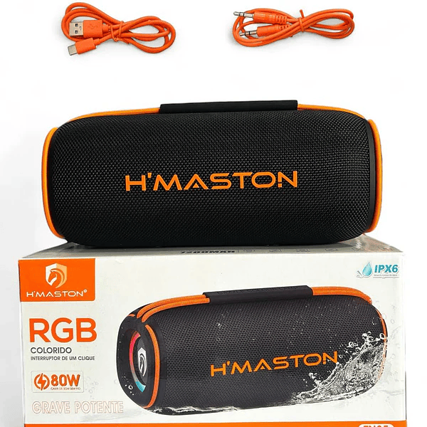Caixa de Som Portátil Wireless Bluetooth Resistente a AGUA 80W Alto Falante Dupla RGB Rádio PenDrive