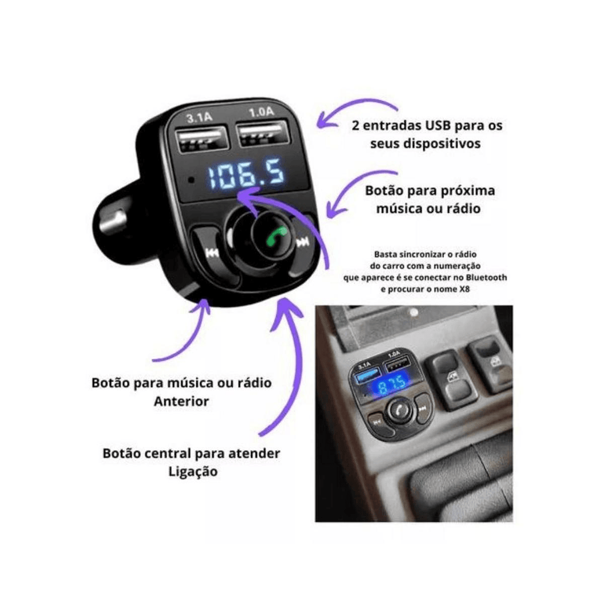 Modelo: Transmissor FM com Bluetooth