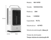A eficiência energética do modelo WK-YHF01 é classificada como A, o que significa que você pode utilizá-lo sem se preocupar com o consumo excessivo de energia. O controle remoto facilita o manuseio, permitindo que você ajuste as configurações sem sair do lugar. Transforme seu espaço em um refúgio de frescor e bem-estar com o Climatizador Portátil Fan Branco.