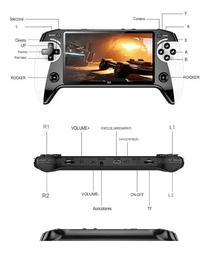 Leve a diversão para qualquer lugar com o X9! Compacto, moderno e cheio de recursos para quem ama jogos clássicos e entretenimento portátil.