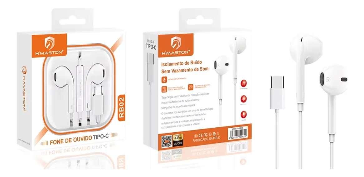 Fone De Ouvido H'maston Rb02 Tipo C Com Fio