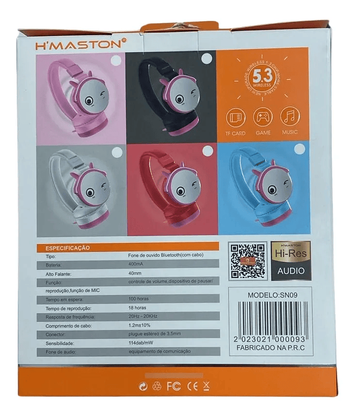 Os Fones de Ouvido Sem Fio Infantis Delicados SN09 da marca H'maston são a escolha perfeita para os pequenos amantes de música. Com um design over-ear, proporcionam conforto durante o uso prolongado, permitindo que as crianças aproveitem suas músicas e programas favoritos sem desconforto.
