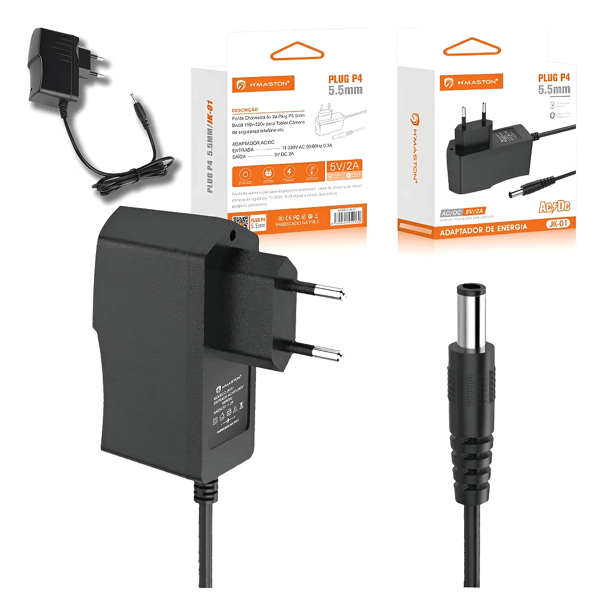 Garanta energia estável e segura para seus dispositivos eletrônicos com a Fonte Carregador H'Maston JK-01. Projetado como um adaptador bivolt de 5V e 2A com plug P4 de 5.5mm, este carregador é a solução ideal para alimentar uma vasta gama de aparelhos, desde câmeras de segurança a tablets e TVs boxes, oferecendo proteção inteligente e alta compatibilidade.