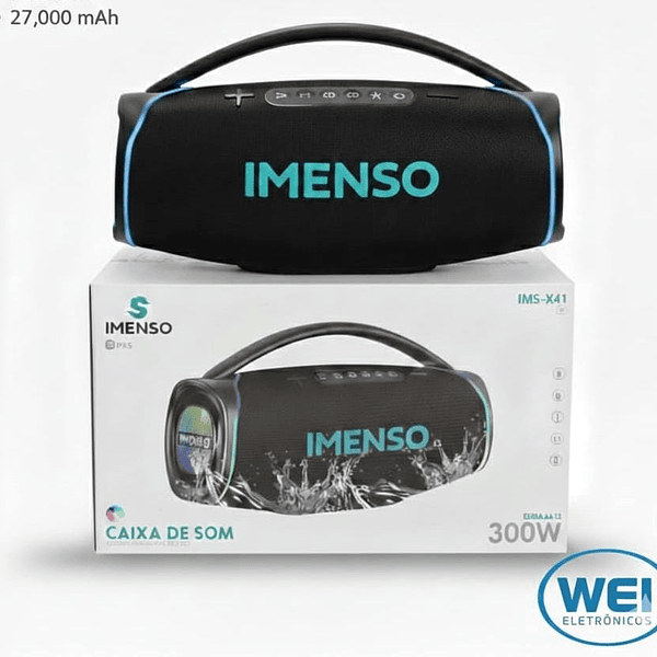 Apresentamos a nova Caixa de Som Bluetooth IMENSO X41A, um lançamento que entrega potência, qualidade sonora e versatilidade para qualquer ambiente. Ideal para festas, áreas externas e uso diário, ela combina 300W de potência real com um design moderno e robusto.