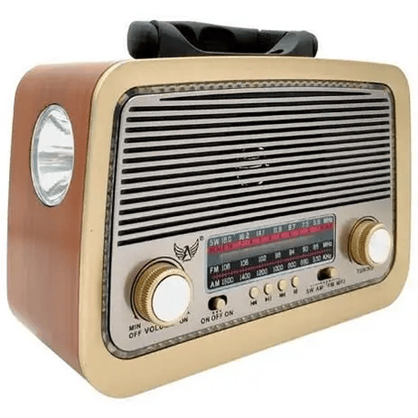 Este é um rádio estilo retro, com Bluetooth, entrada para Pen drive e cartão de memória.