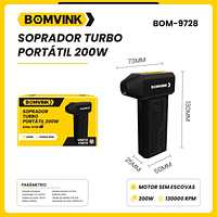 Soprador Turbo Portátil 200W BOMVINK BOM-9728
