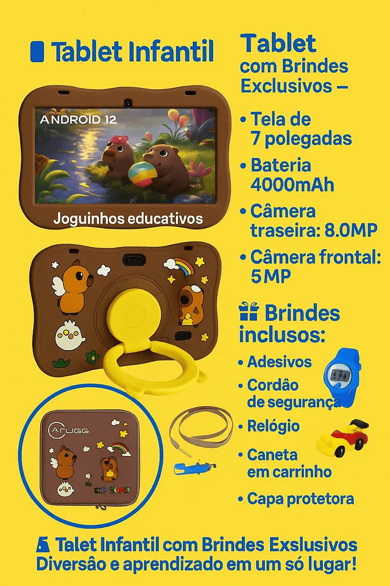 Tablet Infantil Capivara Kids Android Tela 7 Com Brinde
